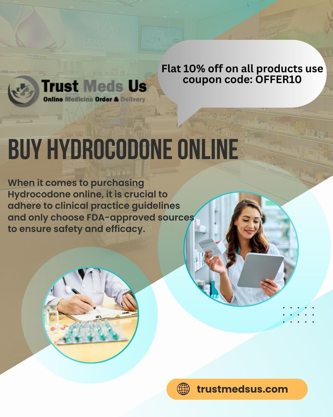 Are you searching for a reliable source to buy Hydrocodone online without a prescription using Bitcoin for shipping to Florida? Look no further than trustmedsus.com! Our platform is renowned for adhering to Clinical Practice Guidelines and offering only FDA-approved medications. When it comes to Hydrocodone, a powerful pain reliever, our products are 100% authentic and proven to provide effective relief. By choosing us, you can access this medication at a surprisingly low cost, ensuring your health doesn't break the bank. Additionally, our Telehealth services make the ordering process seamless and convenient. With our secure Bitcoin payment option and easy Rx checkout, you can trust trustmedsus.com to provide a hassle-free experience from start to finish. Benefit from the convenience and reliability of purchasing Hydrocodone online securely and affordably—trustmedsus.com has got you covered.